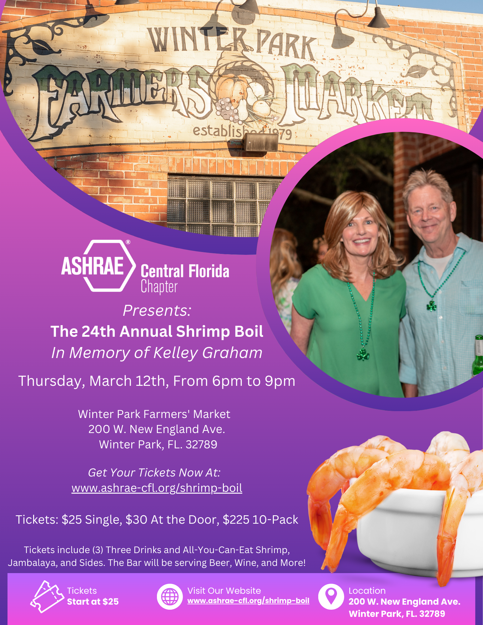 Please Note: In order to reduce costs, we are not using a third-party ticket vendor this year. Check-in will be handled the same way it is during our chapter meetings. If you don’t submit a list of names, please just have your guests give us your name or company and we will check them off.